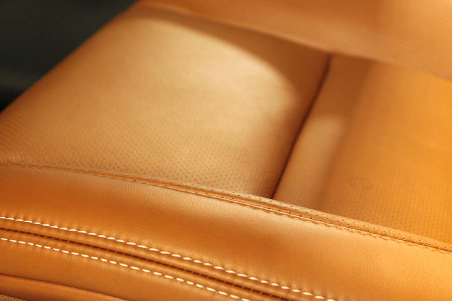 Искусственная кожа визуально гладкая, ровная, может быть совершенно любого оттенка, на ощупь мягкая, прохладная. Материал слегка каучуковый, создает резиновый скрежет. Складки выглядят объёмно и наполнено, немного топорщатся.