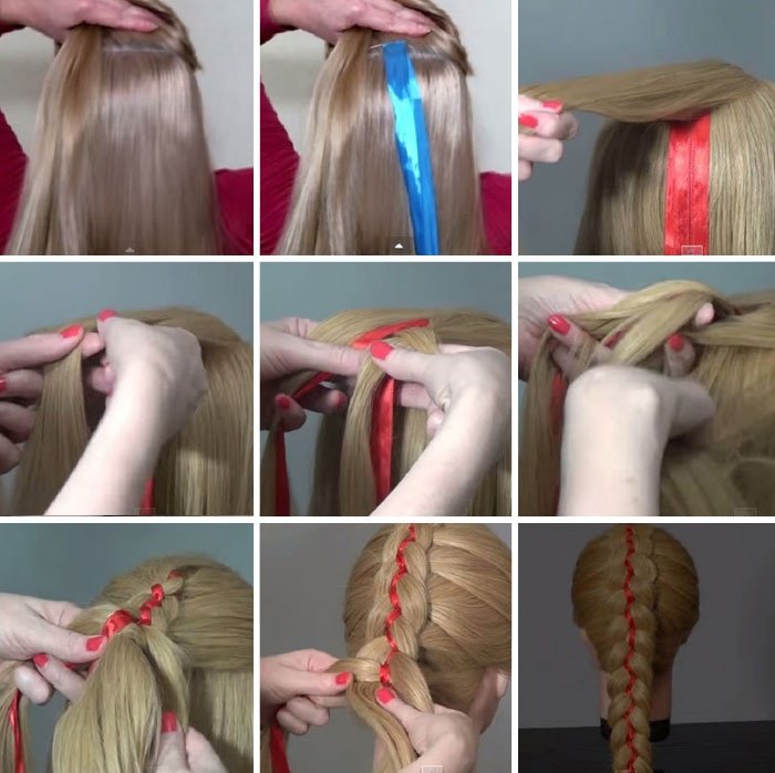 Как красиво и как сделать простую косу с лентой Прическа для длинных волос