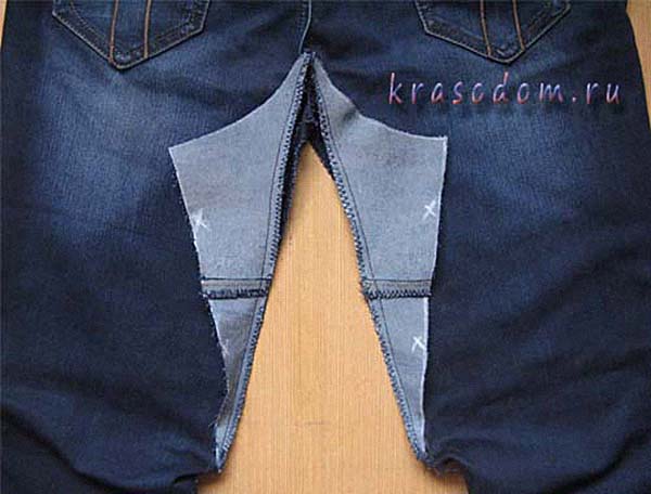 Как поставить латку на джинсах между ног