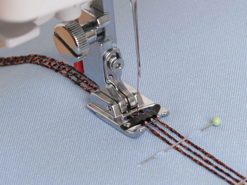 После этого можно прокладывать параллельные строчки пользуясь разметкой на игольной пластине или швейной машине.