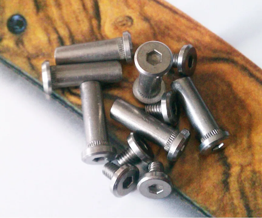 Такие заклепки не нужно будет расплющивать, формирую шляпку. Они сами будут заклепываться от небольших ударов, прочно держа боковые накладки ножа.