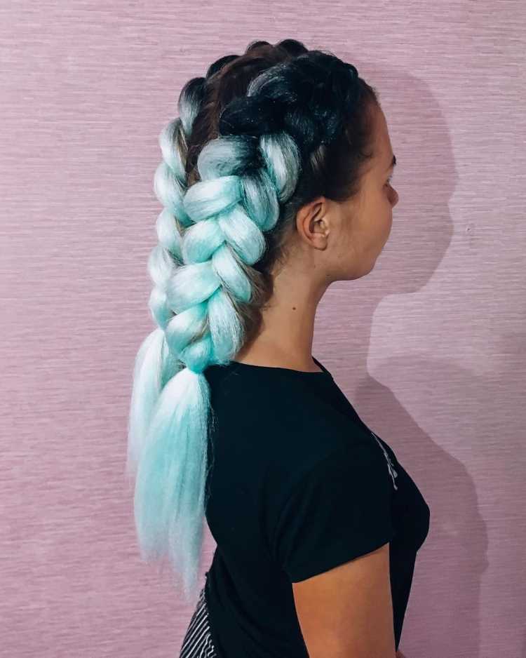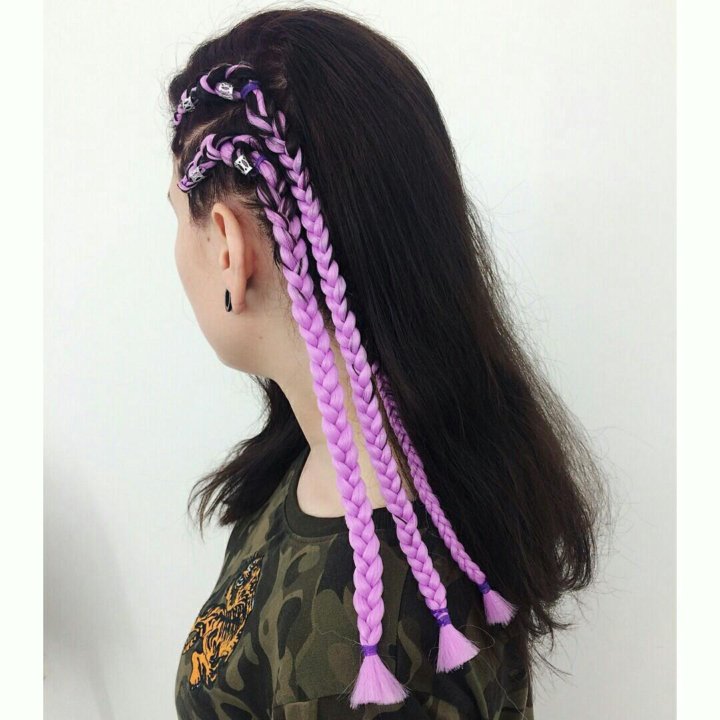 В светлые волосы вплетают темный канекалон и наоборот, выглядит это очень эффектно! Яркие косы с искусственными волосами подойдут подросткам либо для вечеринок, а для повседневной носки, в офис подберите натуральные оттенки, подходящие к вашим родным волосам.