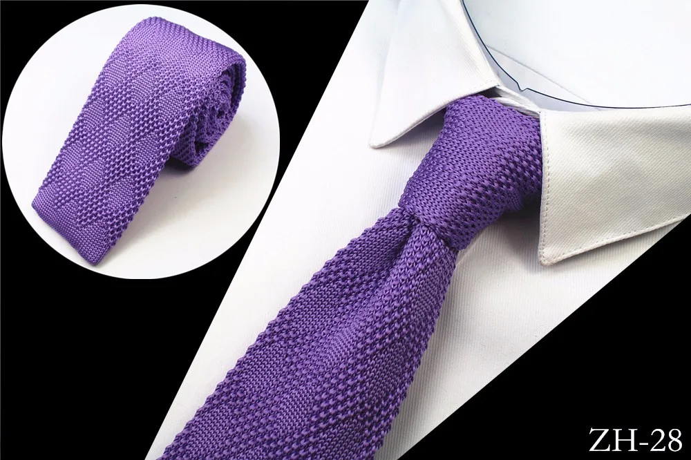 Обычно вязаные галстуки выглядят лучше, если они немного уже по ширине (от 2 до 2,5 дюймов).
