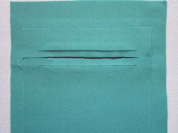 После этого шага вам необходимо с изнаночной стороны в обе стороны от середины кармана выкроить отверстие.