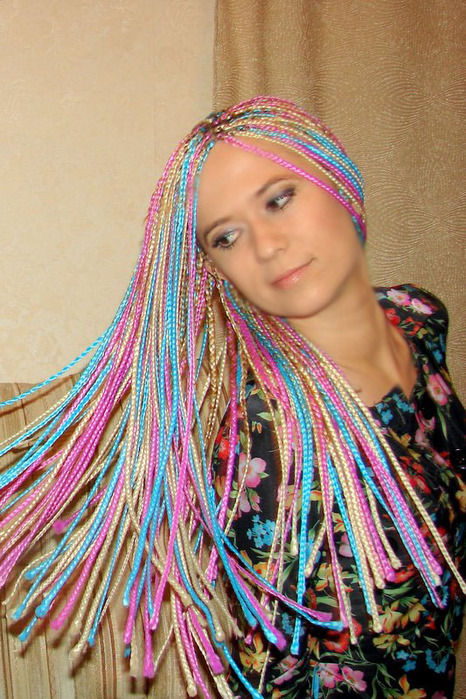 Время шло и прически стали меняться, появлялись и более объемные плетения, которые смотрелись на порядок лучше! Я решила, что тоже хочу, это же совсем другой стиль для меня. Честно, засматривалась еще на безопасные дреды, но это выходило дороже, если брать готовые или дольше, если делать «заготовки» самой. Вдохновлялась работами, ВК повесила себе как хотелку, которую может быть осуществлю