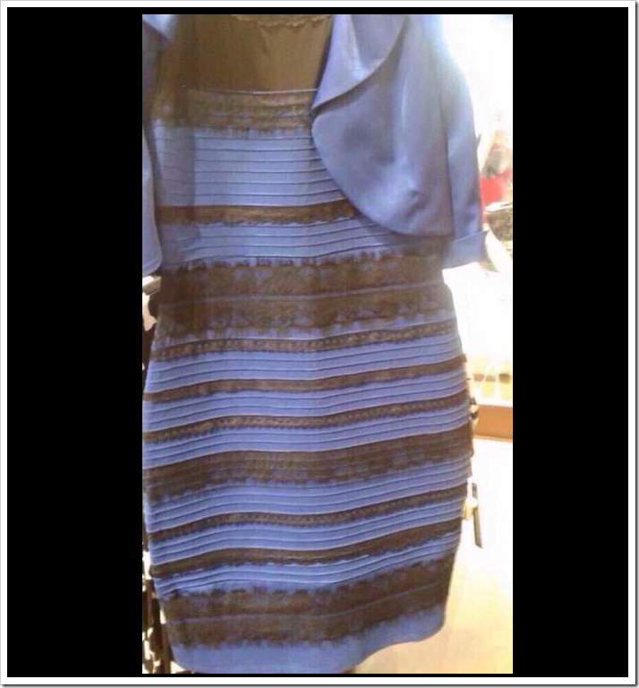 В феврале этого года мировой интернет был охвачен спором небывалого масштаба из-за цвета платья, фото которого выложила в Сеть шотландская певица Кэтлин МакНил. «Два моих близких друга собрались пожениться. И мама невесты послала ей фотографию этого платья. Когда невеста показала платье жениху, они едва не разругались из-за его цвета», — пояснила певица и призвала общественность помочь разобраться в цвете наряда. В итоге сотни тысяч людей во всех странах прильнули к экранам компьютеров и втянулись в спор: кому-то платье однозначно увиделось бело-золотым, кто-то твердо заявил, что оно сине-черное.