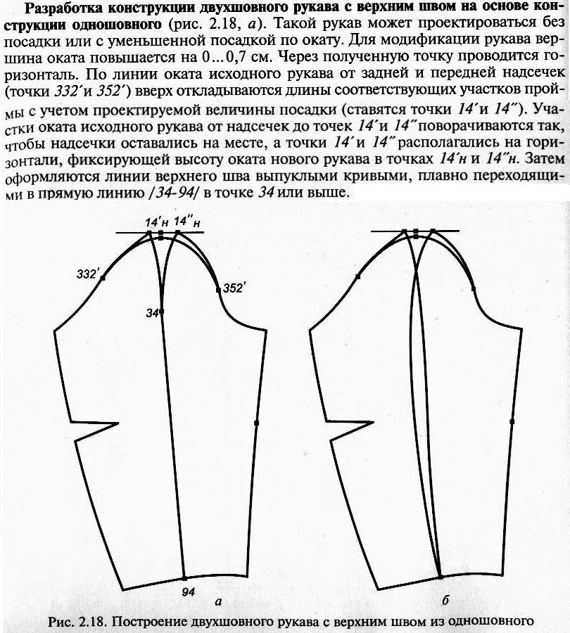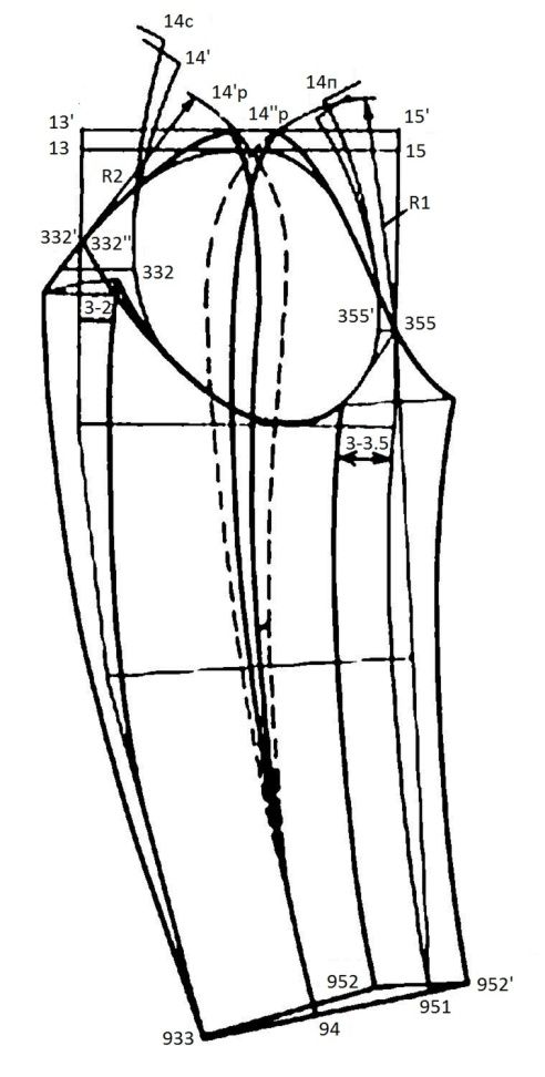 Рис. 3. Чертёж выкройки двухшовного рукава.