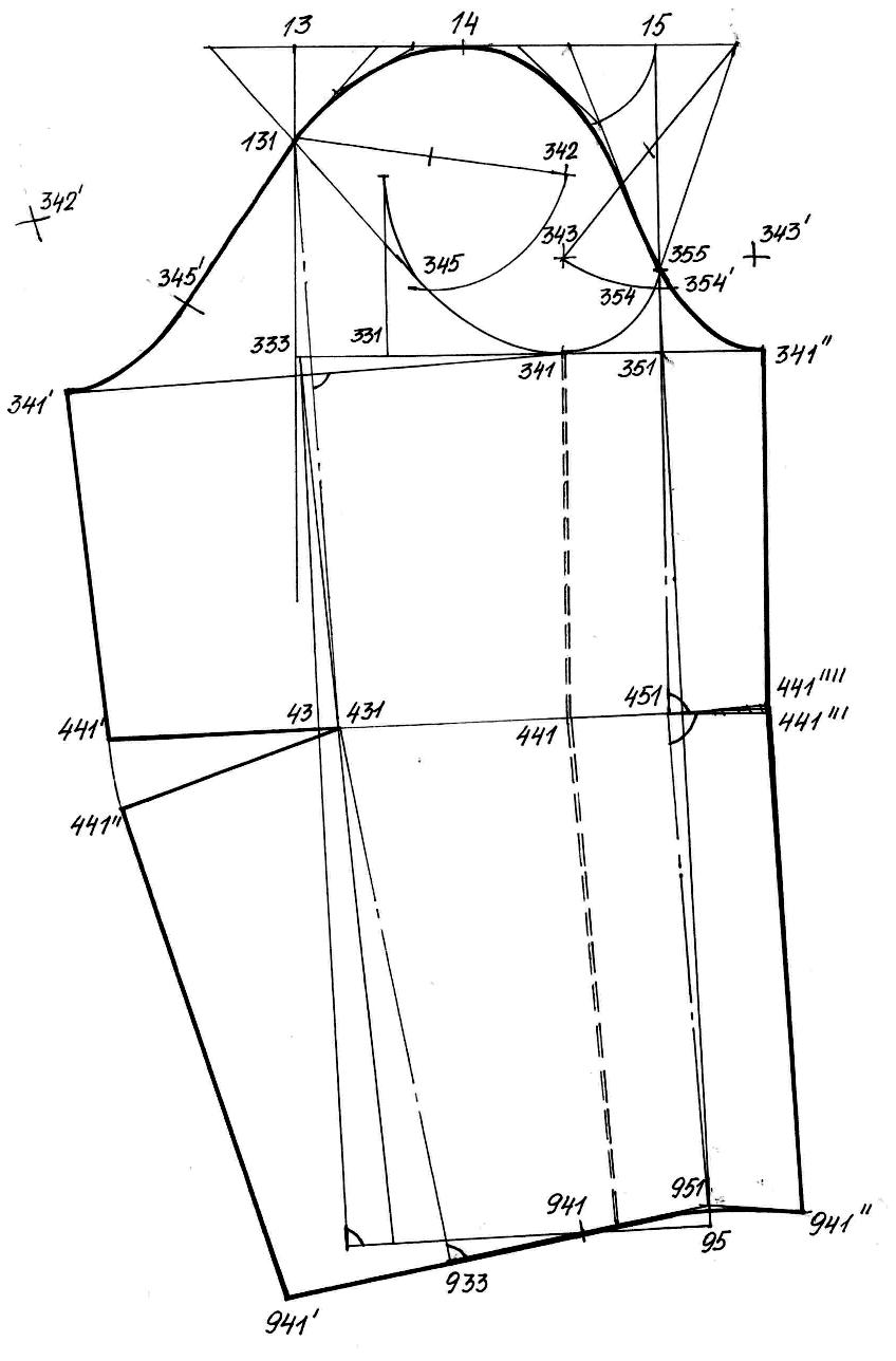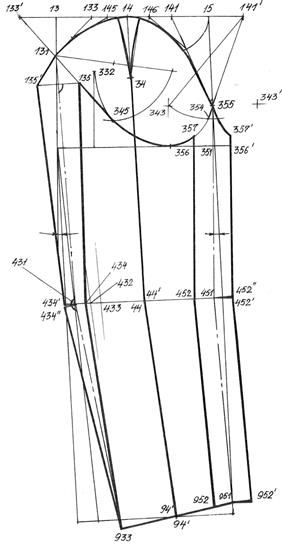 Нижний срез верхней части рукава проводим через точки М4, М1, М31.