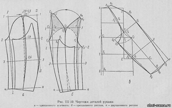 Наиболее распространенные покрои рукава — вшивной, реглан и цельнокроеный.