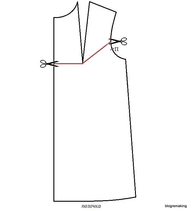 Теперь вы знаете, как легко и просто можно убрать нагрудную вытачку, чтобы полочка понравившейся модели получилась без вытачки.