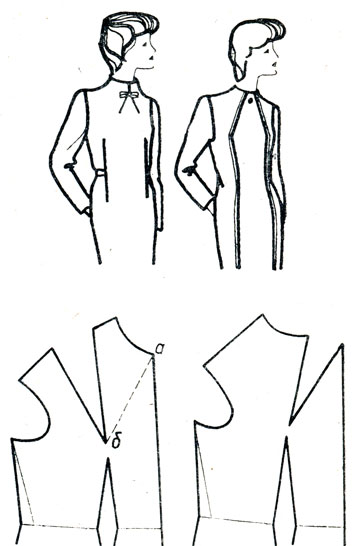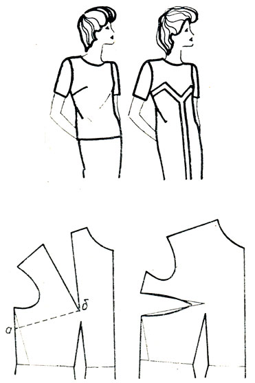 В изделиях из трикотажных полотен возможно использование конструкции переда без нагрудной вытачки. Такой вариант обычно используется для свободных объемных изделий или наоборот для плотнооблегающих моделей.