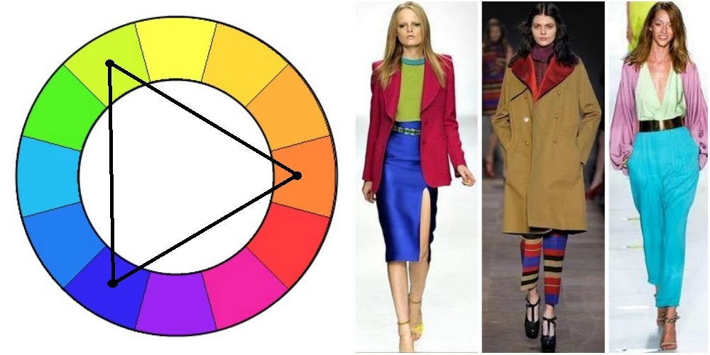 При этом сочетать лучше цвета со сниженной насыщенностью, т. к. «триаду» нужно очень тонко чувствовать, здесь очень легко переборщить с пестротой, особенно если не учитывать свой цветотип. Возможно какой-то цвет вам попросту противопоказан, а в тройном контрастном сочетании его эффект может быть даже утрирован компаньонами.