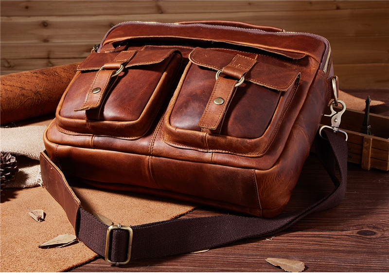 Кожаная сумка-мессенджер Rugged Style из итальянской кожи растительного дубления от Nicola Meyer