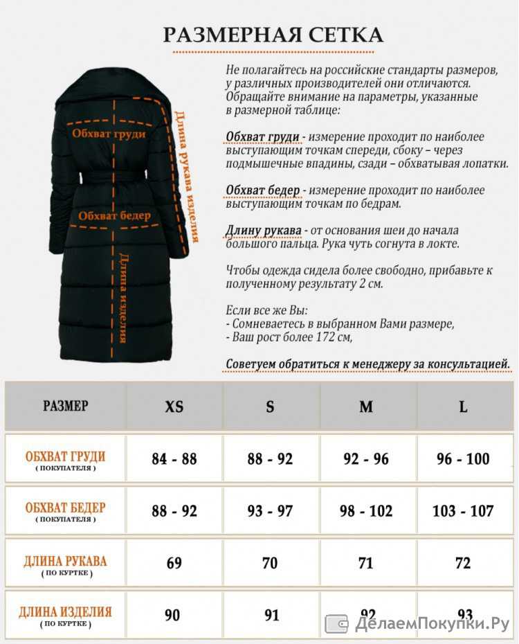 Таблица размеров зимней куртки