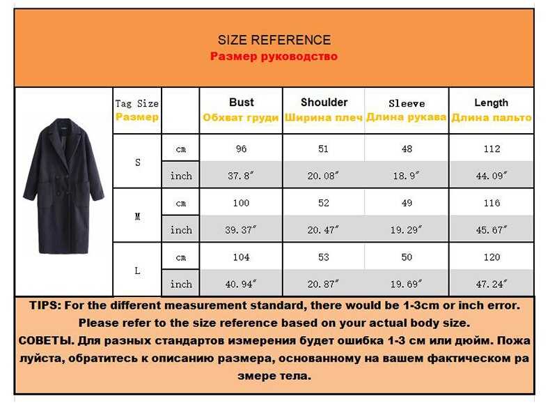 Таблица размеров женских пальто