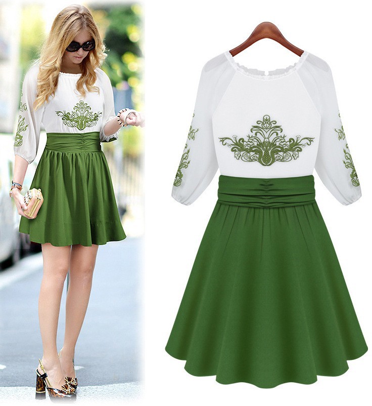Сочетание зеленого цвета с белым придает образу свежесть и невинность, можно попробовать поэкспериментировать с добавлением третьего оттенка: коричневого, красного, розового, бежевого. Полученный образ хорошо смотрится в строгой офисной обстановке, на людной улице или жарком пляже.