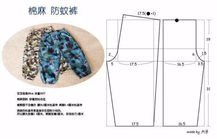 Два разреза и выкройка готова. Брюки я сшила из хлопка в горошек с эластаном.