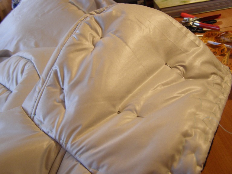 - Распороть подкладку и постепенно убирать утеплитель, следя за тем, чтобы его не осталось слишком мало, а затем снова соединить ткань.