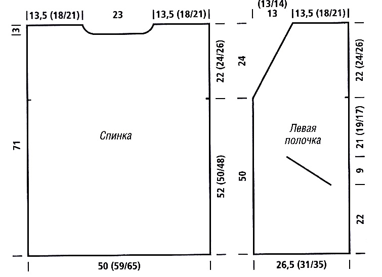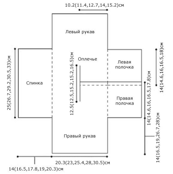 - Обхват груди в готовом виде: 34 (38, 42, 46, 50, 54) дюйма
