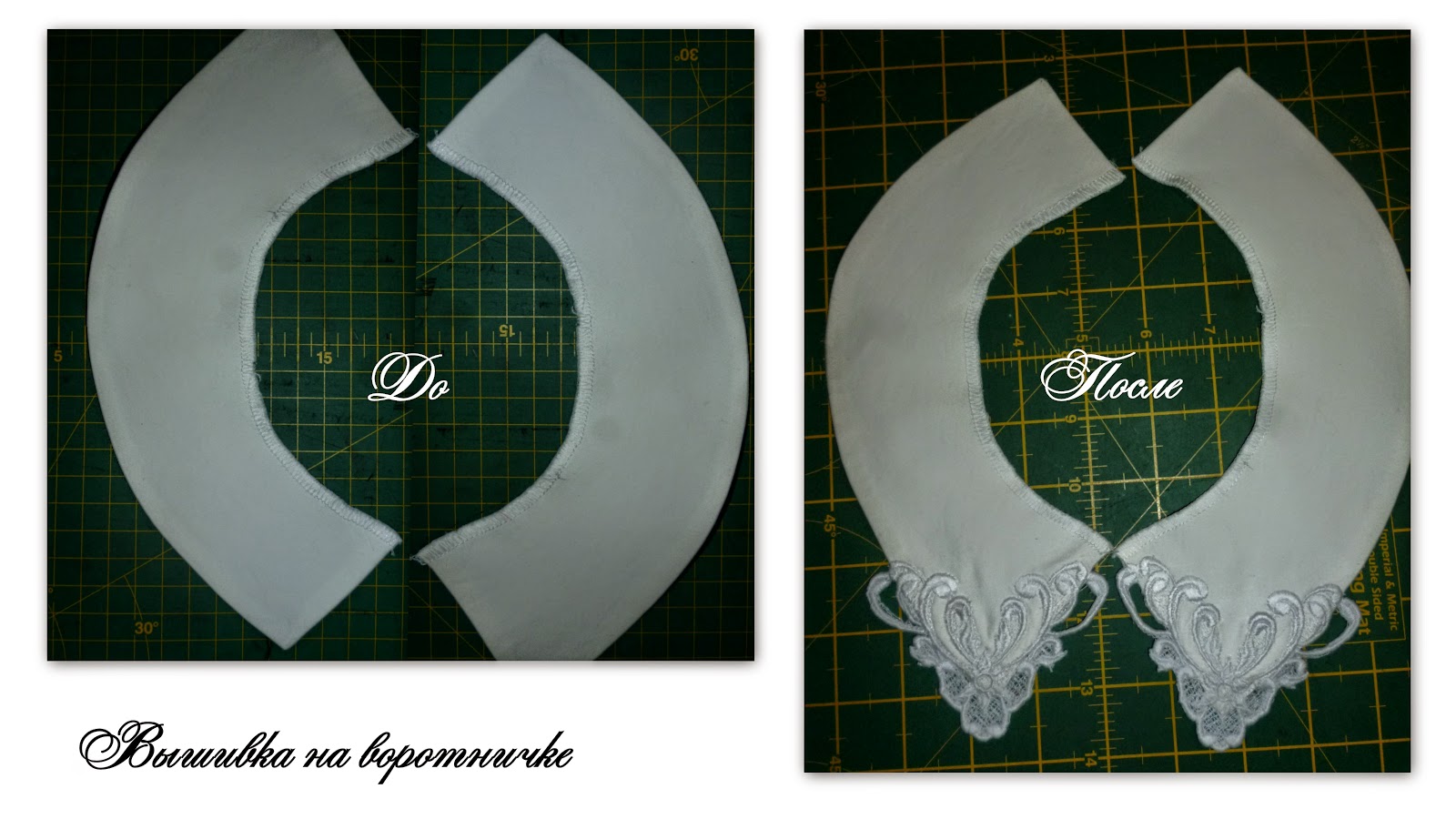 Для воротничка используют тонкую белую ткань (кстати говоря, такие же простые воротнички могут использоваться для школьной формы советского образца, которую часто надевают на выпускные вечера или для оформления карнавальных костюмов). Величину воротника определяют индивидуально по замерам объема шеи. Ориентировочно длина может быть до 40 см, ширина — до 8 см.